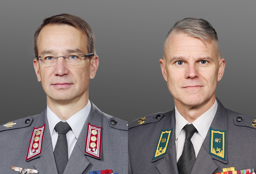 Eversti Mika Kalliomaa (vas.) ja prikaatikenraali Pasi Välimäki (oik.)