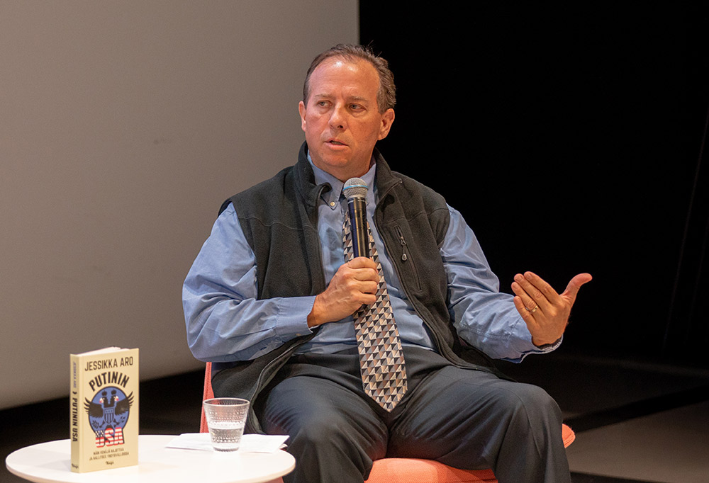 – Venäläinen informaatiosodankäynti on todellinen turvauhka, hän kertoo uuden Putinin USA -kirjansa julkaisutilaisuudessa.