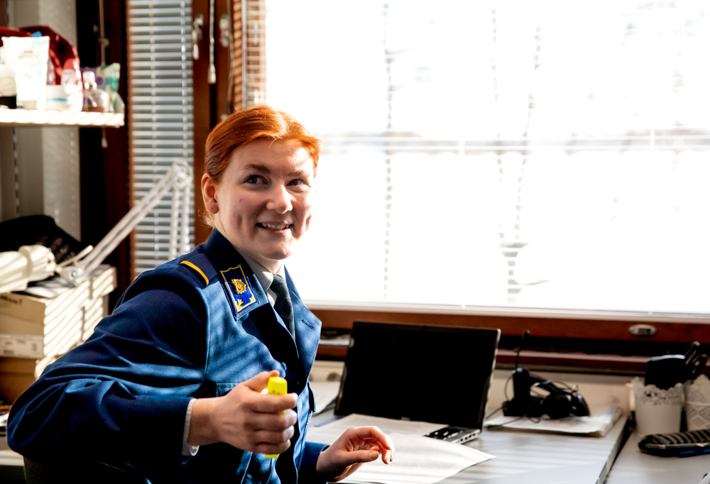 Beata Seikkula toimii opintojensa ohella somekadettina. Kadettien arkea voi seurata lisää Instagramissa @upseeriksi -tililtä. Kuva: Eero Tammivuori