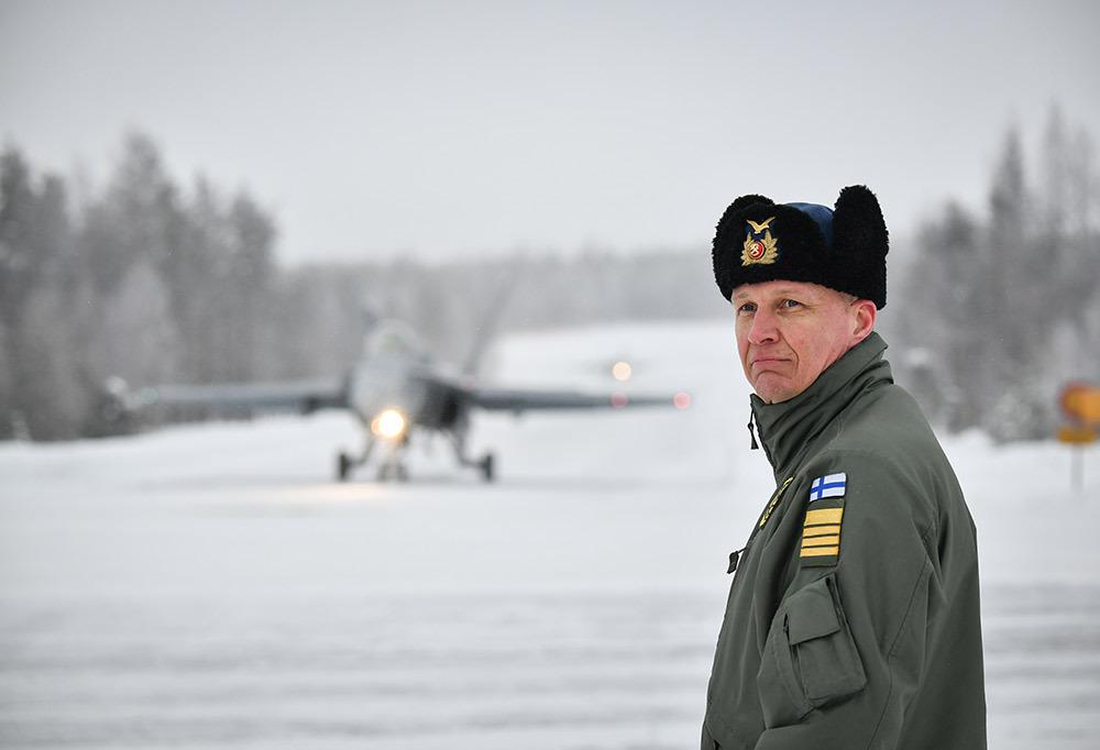 Harjoituksen johtaja ja Lapin lennoston komentaja, eversti Tuukka Karjalainen seuraa tapahtumia vierestä.