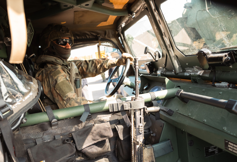 Pyhtään lentokentällä näkyi liittolaismaiden kalustoa, jota Suomessa harvemmin näkee. Puolalaisten käytössä oli useampi Humvee -ajoneuvo, yhdysvaltalainen Himars, eli kuorma-autoalustainen raketinheitinjärjestelmä sekä Puolan laskuvarjojoukkojen oma Aero 4x4.