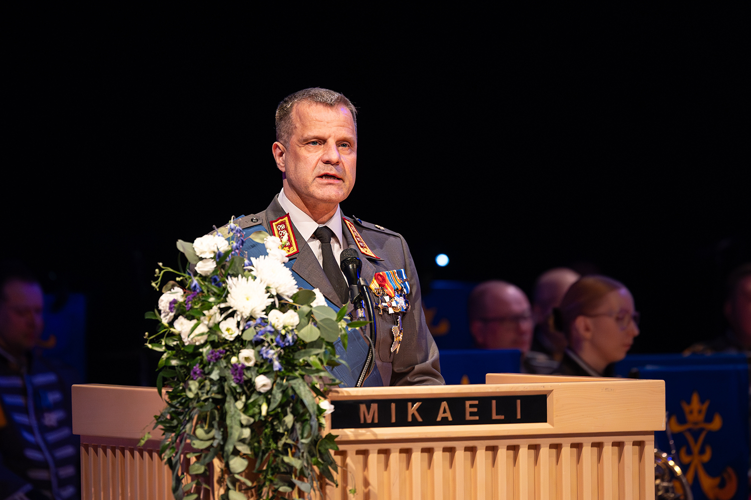 Puolustusvoimain komentaja, kenraali Janne Jaakkola toi tapahtumaan Puolustusvoimien terveiset. Kuva: Lempi Leinonen