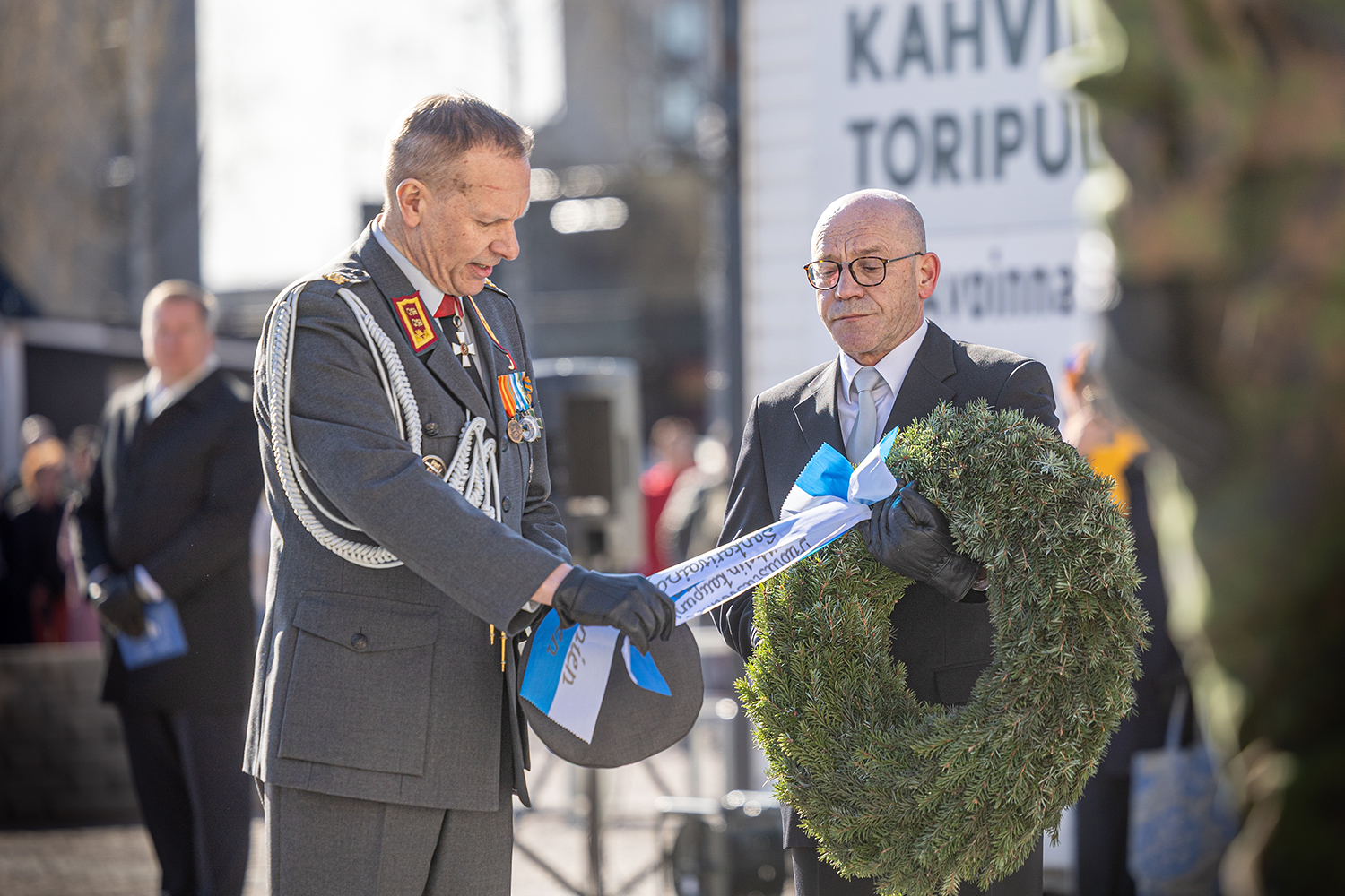 Veteraanipäivä alkoi Mikkelin torilla seppeleen laskulla. Kuva: Lempi Leinonen