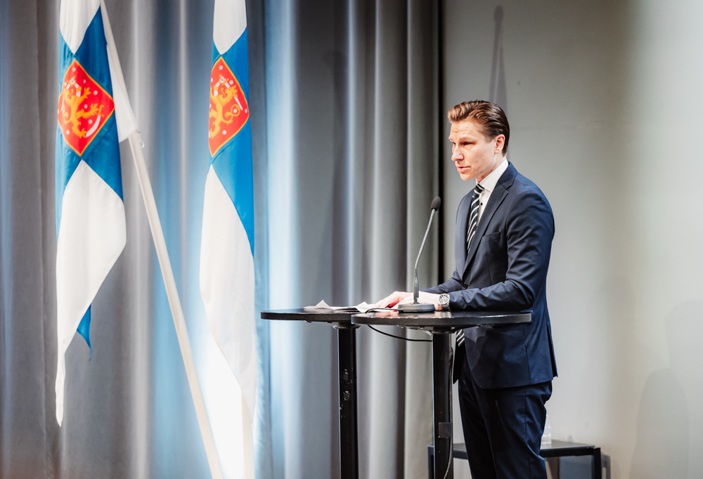 Puolustusministeri Antti Häkkänen puhui Venäjästä hyvin suoraan avajaisissa. Kuva: Eeli Gröhn