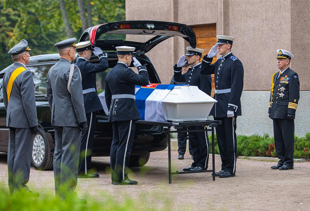 Puolustusvoimain entisen komentajan, amiraali Jan Klenbergin siunaustilaisuus järjestettiin tarkoin hiotuin sotilaallisin kunnianosoituksin. Klenbergin muistoa olivat kunnioittamassa kaikki elossa olevat Puolustusvoimain komentajat.