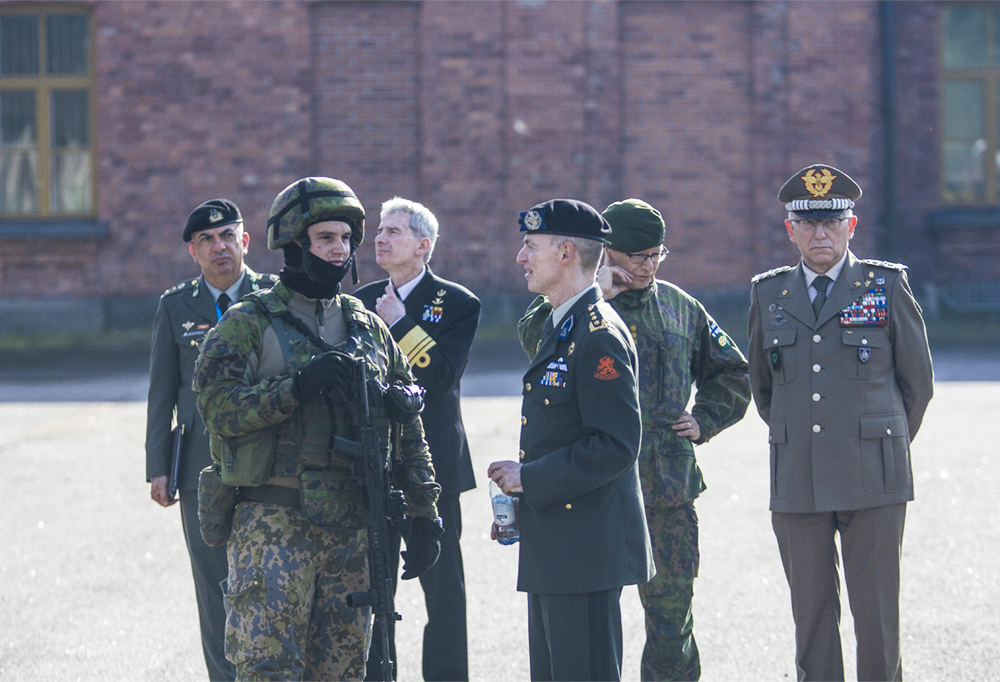 Vierailun aikana EU-jäsenmaiden sotilasedustajat tutustuivat myös Suomen puolustuskykyyn, asevelvollisuuteen ja viranomaisyhteistyöhön Kaartin jääkärirykmentissä Santahaminassa.