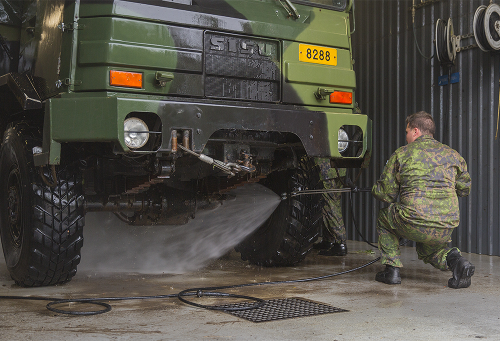 Puolustusvoimat torjuu sikaruttoa kaluston puhdistamisella