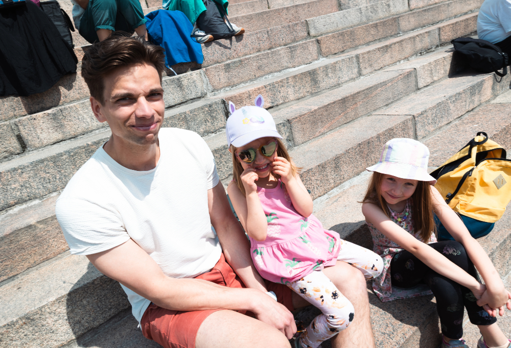 – Tultiin tyttöjen kanssa nauttimaan kesäpäivästä. Tämä on vähän tällainen varaslähtö kesälomaan, perheenisä Oskari Keskitalo kertoo. Vuosittainen paraati on hänelle ennestään tuttu, lapset ovat mukana ensimmäistä kertaa.