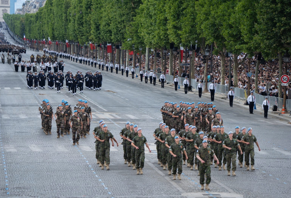 Ranskan asevoimien komentaja, kenraali Thierry Burkhard luovutti mitalit Ranskan kansallispäivän sotilasparaatin yhteydessä Pariisissa.