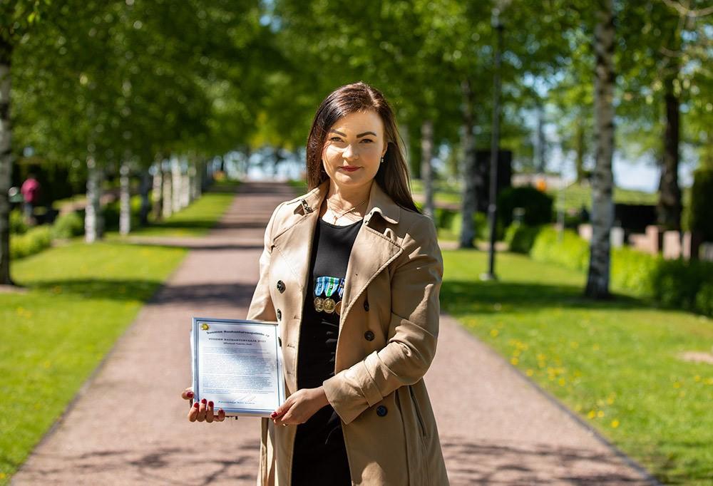 Vuoden rauhanturvaajaa reservin yliluutnantti Katariina Laustoa kuvaillaan rauhalliseksi ja määrätietoiseksi sotilaaksi. Kuva: Konsta Törne.