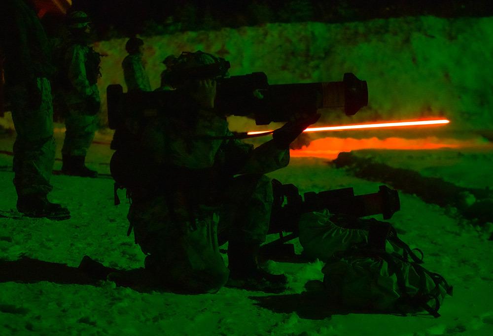 lämpötähystimiä. Toiminta pimeässä oli muutenkin keskeinen osa: yhden maissa keskellä yötä jääkärit pääsivät testaamaan taitojaan kertasinkoammunnassa pimeässä, valopatruunan valaisemilla ampumaradoilla. Lumisateen tuiskutessa valopistoolilla ammuttiin taivaalle ja jääkärit saivat kukin vuorollaan ampua kertasingoillaan maaleihin, mikäli ehtivät tehdä sen valopatruunan loistaessa taivaalla. Valopatruuna valaisee maastoa noin viisi sekuntia ennen kuin se tippuu maahan ja sammuu.
