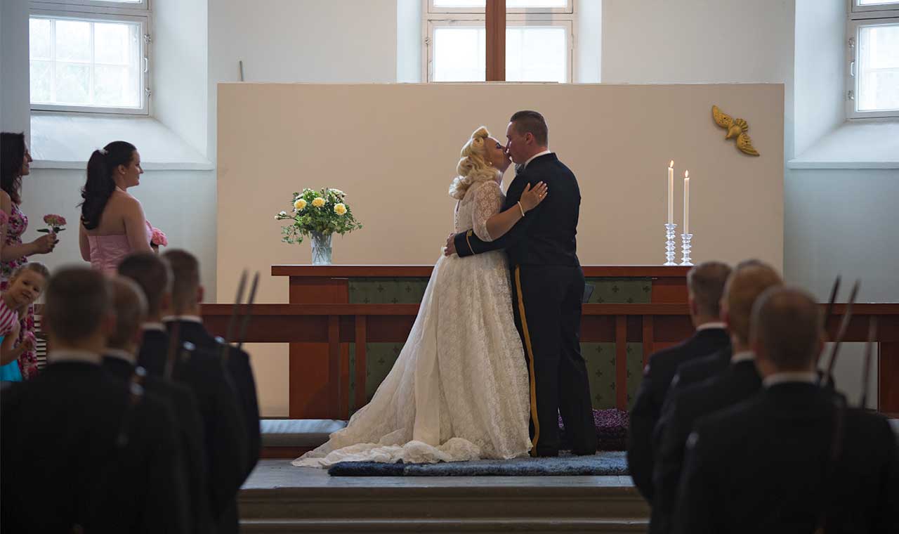 Pariskunta tapasi toisensa Suomenlinnan jylhillä kallioilla jo lapsina, joten juhlapaikan valinta oli selvä. Merisotakoulun johtajakin antoi hyväksyvän leimansa avioliitolle: perinteen mukaisesti Niko anoi joukko-osastonsa komentajalta kirjallista lupaa avioliittoa varten.