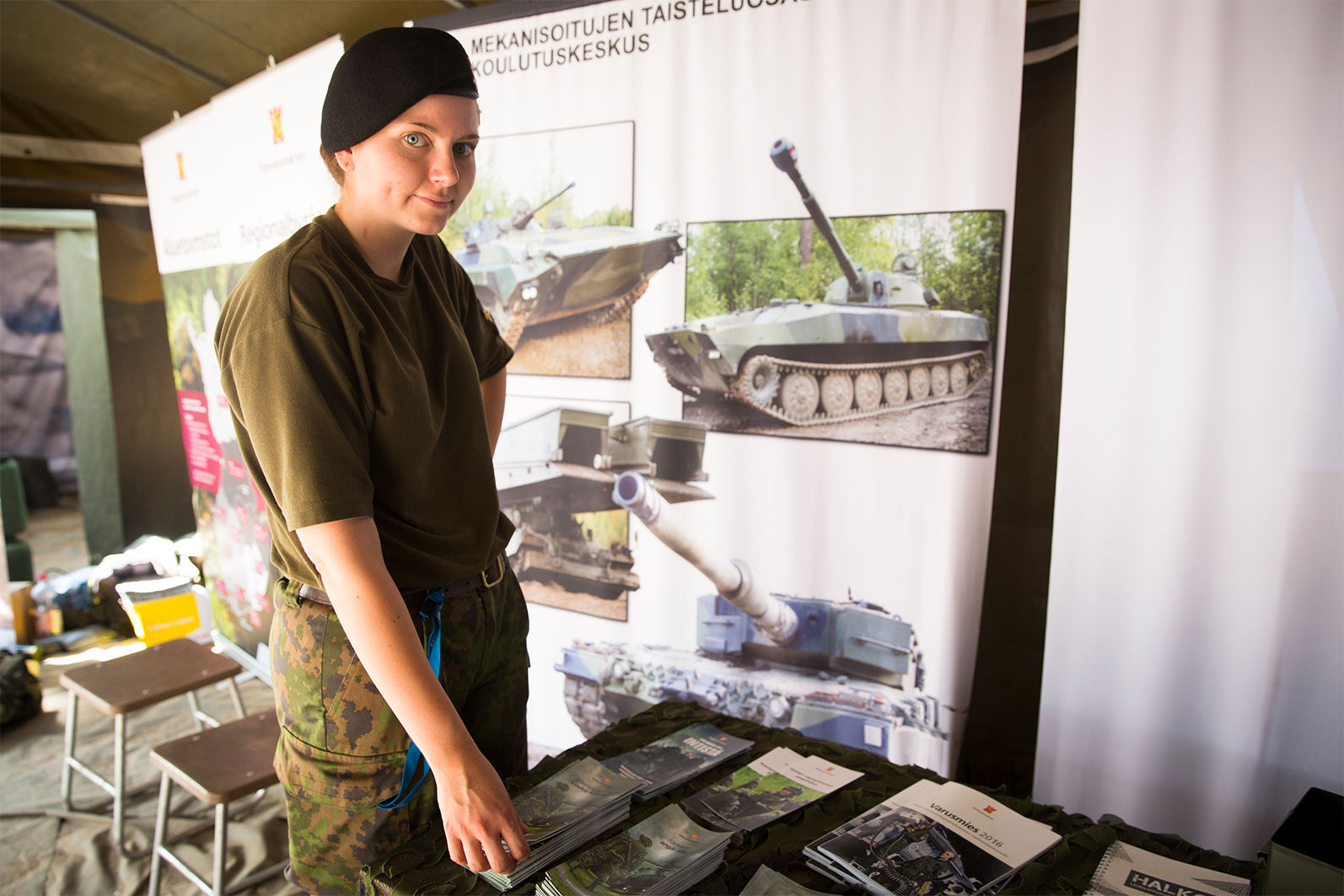 Puolustusvoimat on Suomen Partiolaiset ry:n yhteistyökumppanina näkyvästi esillä tapahtumassa. Maavoimien esittelyteltalla avustava Panssariprikaatissa palveleva alikersantti Krista Pasuri on pisteellä kertomassa faktoja varusmiespalveluksesta.