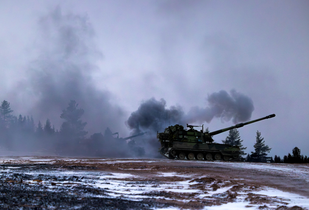 Tositoimissa olevat suomalaiset K9-panssarihaupitsit ovat majesteettinen näky.