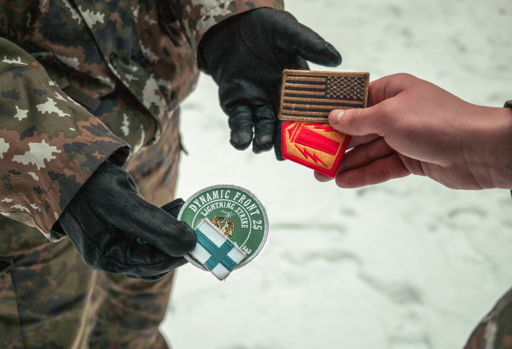 Hihamerkkien vaihtokauppa on yleinen tapa eri valtioiden sotilaiden keskuudessa, näiden kohdatessa kansainvälisissä harjoituksissa. Kuva: Elmeri Lehti