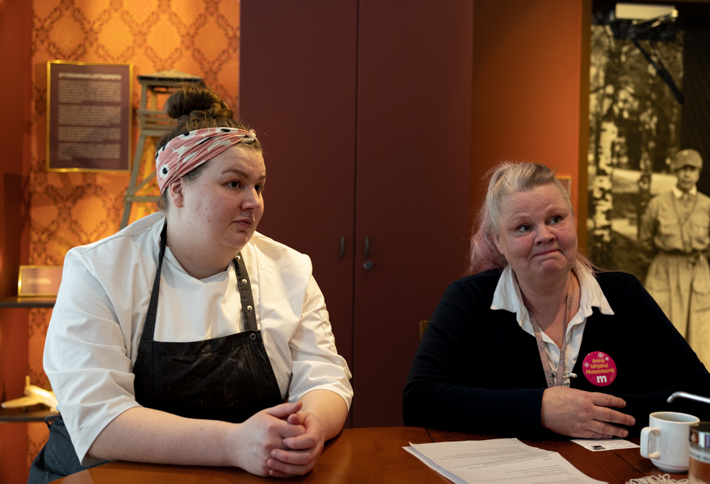 Sini Matkalin ja Tuija Keskinen työskentelevät Tuusulassa Lottamuseolla ja Lottakanttiinissa. Kuva: Timo Rischer