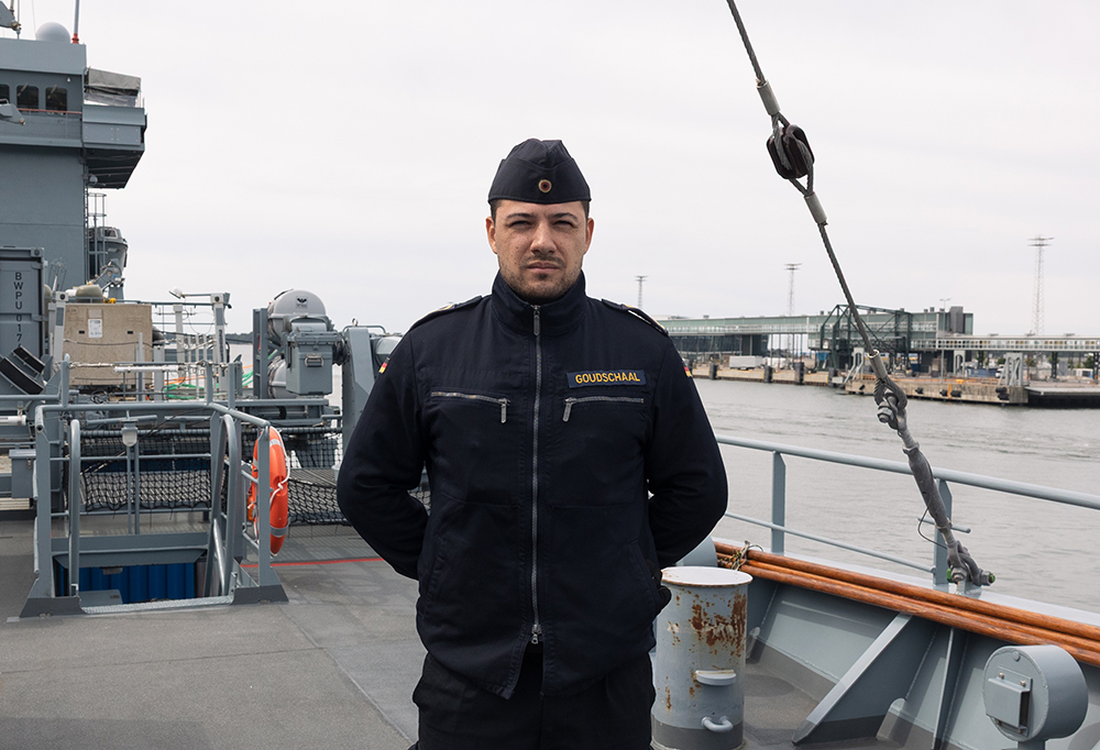 Sukellusveneiden huoltamisen parissa työskentelevä Goudschaal on laivalla ensimmäistä kertaa. Hän kertoo ensimmäisen ulkomaille suuntautuneen laivamatkan olleen jännittävä.