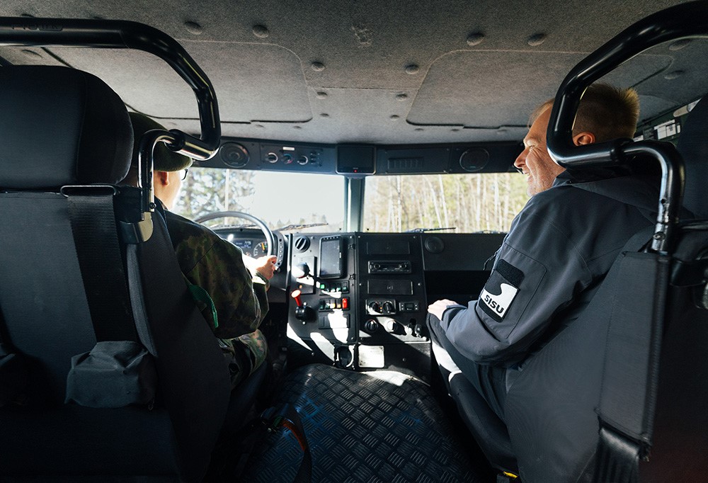 – Samalla tavalla myös polttoainejärjestelmä on kahdennettu. Polttoaine on kahdessa eri tankissa, joiden välillä polttoainetta voidaan vaihtaa tankista toiseen tai ajaa vain toisella tankilla. Samaan liittyy sähköjärjestelmänkin kahdennus eli se varmistaa käytettävyyden myös poikkeustilanteissa, tarkentaa Ahonen ajoneuvon suojaominaisuuksia.