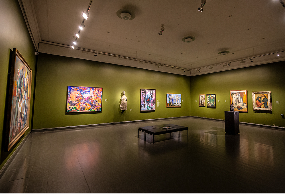 Punaiset lehdet, oranssit talot ja värikkäät ihmishahmot. Taide toi lohdutusta ja toivoa sota-ajan lohduttoman harmaaseen arkeen. Ruotuväki kävi tutustumassa sodan värimaailmaan Ateneumin Sodan sävyt -näyttelyssä.