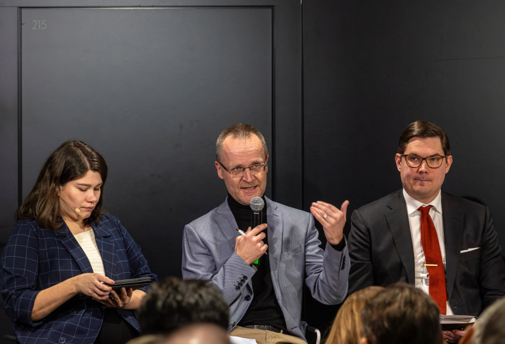 Paneelin moderaattori Anni Lindgren, UPI:n vanhemmat tutkijat Jussi Lassila ja Matti Pesu. Kuva: Sol Martin Jõemaa