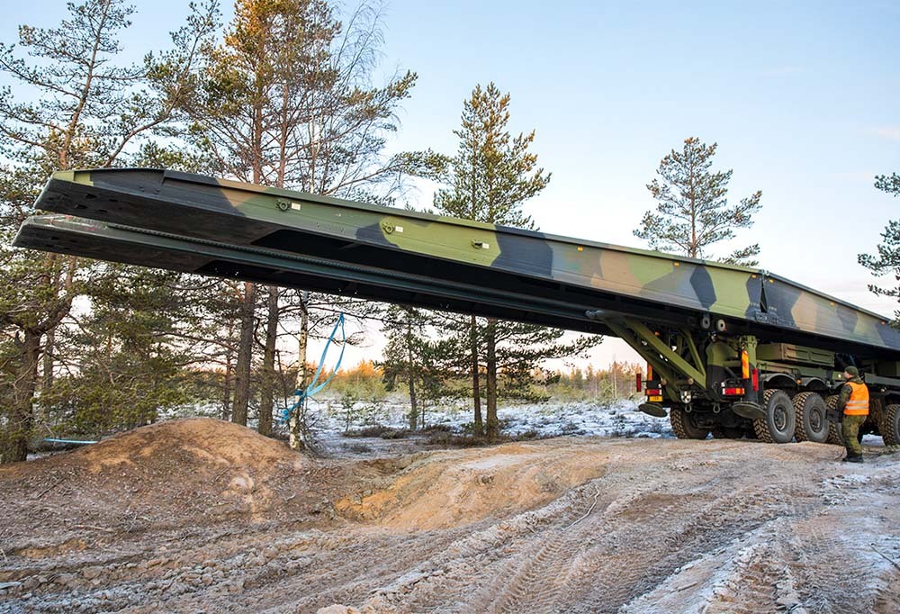 Leguan-sillat helpottavat huomattavasti joukkojen etenemistä vaikeissa pinnanmuodoissa. Kuva: Puolustusvoimat