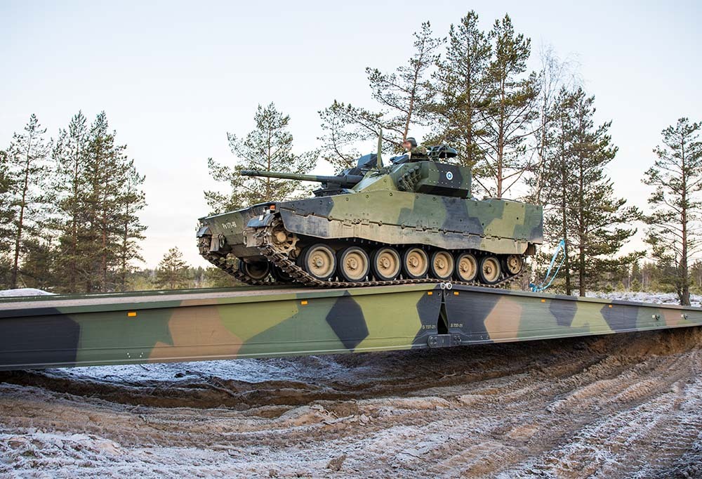 – Niin siltapanssarivaunut kuin silta-ajoneuvotkin kykenevät molemmat käsittelemään 26 metrin sillan lisäksi 14 metrin siltaa. Lisäksi silta-ajoneuvoilla voidaan kuljettaa niin sanotusti ”tandemina” kahta 14 metrin siltaa, Ronkainen selventää.
