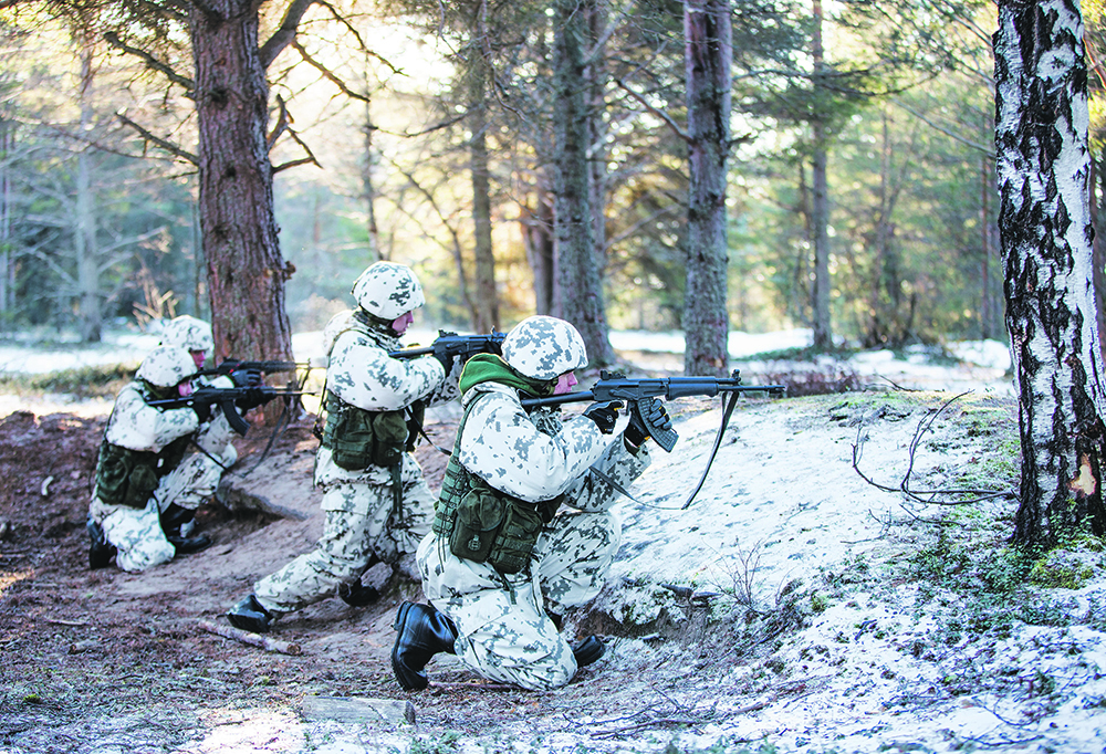 Samaan aikaan toisaalla, metsän siimeksessä rynnäkkökiväärit laukeavat taukoamatta. Varusmiehet taistelevat osumat ilmoittavat Kasi-liivit päällään ja harjoittelevat hyökkäämistä ja puolustamista. Tilanne näyttää puolustuksessa epätoivoiselta, oikean laidan puolustus on pettänyt.