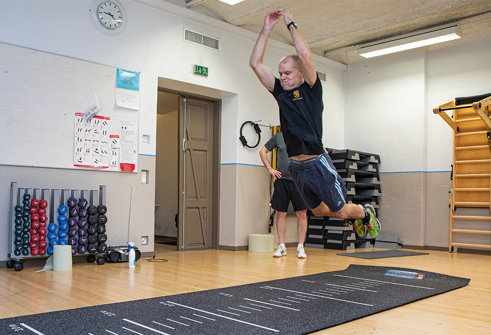 Ruotuväki kävi seuraamassa Pääesikunnan liikuntatiloissa järjestettyä kuntotestiä. Aluksi vuorossa olivat jo entuudestaan tutut lihaskuntotestit: pituushyppy, etunojapunnerrukset ja istumaannousut.