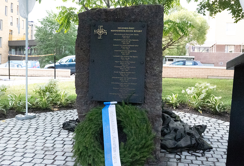 Ruskeasuon Ratsaspuistossa paljastettiin helsinkiläisten Mannerheim-ristin ritareiden muistomerkki. Muistolaattaan on kaiverrettu 12 Helsingissä syntyneen ritarin nimet.