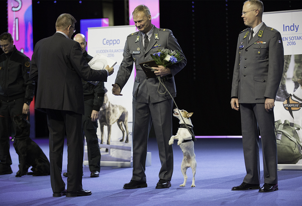 – En kyllä odottanut, että kunnia tulisi meille. Parsonrussellinterrieri ei ole se tyypillisin sotakoira, Mustonen toteaa.