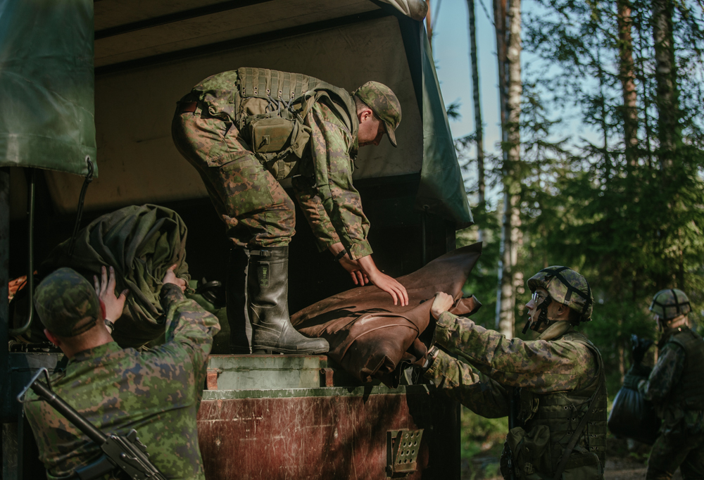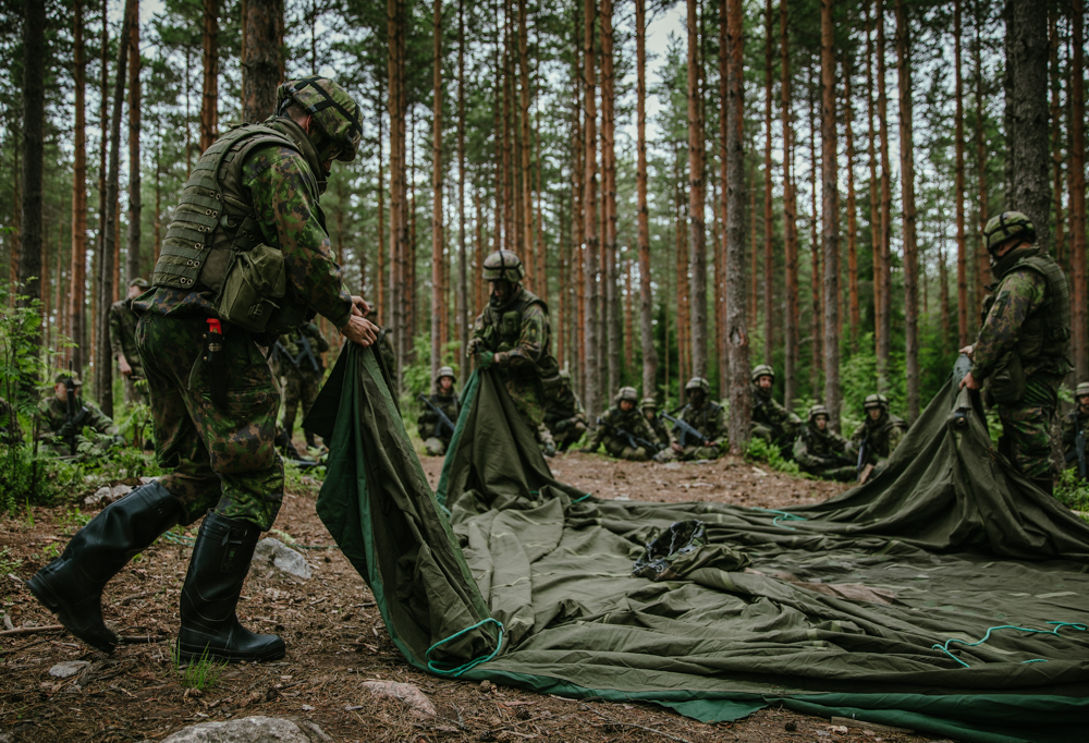 Metsän siimeksestä kuuluu telttasalkojen kilinää kun alokkaat pakkaavat kalustoa valmiiksi. Joku viheltelee tyytyväisenä. Tunnelma on kaikin puolin hyvä ja tekemisen meininki on vahvasti läsnä. Telttakalusto ja sotilaiden isot reput pakataan kuorma-autojen kyytiin ja alokkaat alkavat valmistautua aamupäivän koulutuksiin. Tiedossa on maastossa liikkumista, ensiavun harjoittelemista, avotulen tekoa ja epäsuoralta tulelta suojautumista.