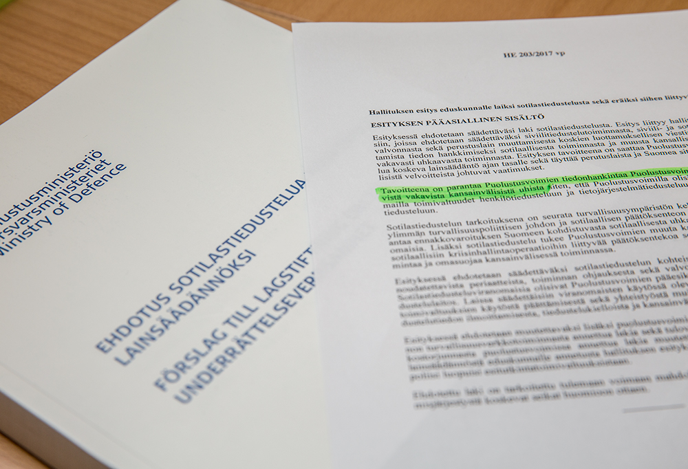 – Hankittua tiedustelutietoa käytetään ylimmän valtiojohdon päätöksenteon tueksi. Sitä ei käytetä turhaan, eikä tavallisen mattimeikäläisen tarvitse pelätä, että omat tiedot joutuvat jotenkin väärille teille.