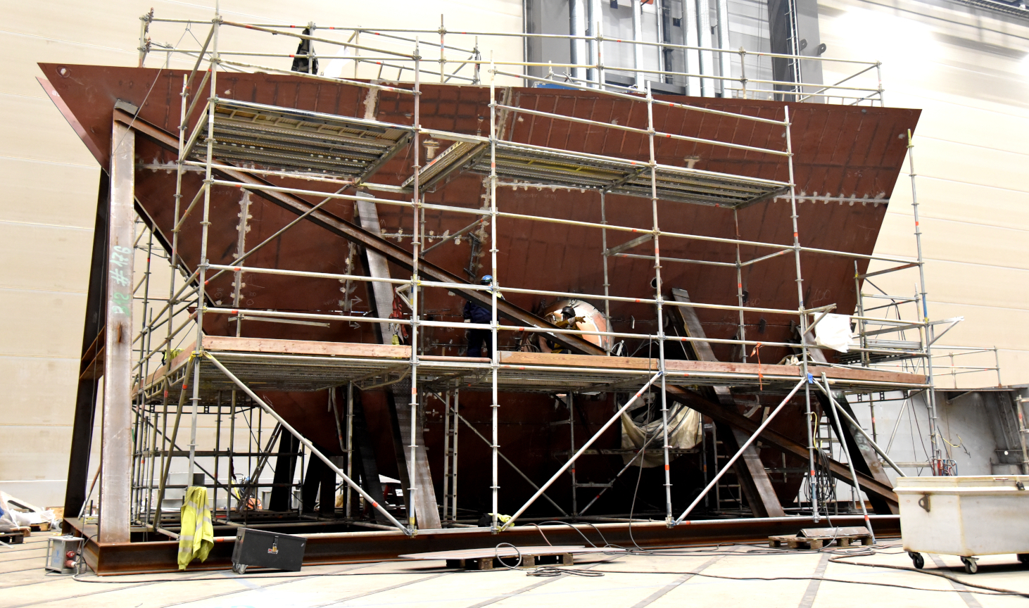 Ensimmäinen monitoimikorvetti alkaa muistuttamaan muodoiltaan laivaa. Kuva: Puolustusvoimien logistiikkalaitos