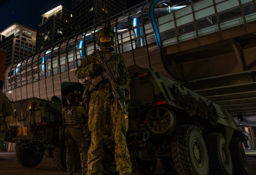 Helsingin lisäksi Kaartin jääkärirykmentti harjoittelee Espoon, Tuusulan ja Porvoon alueella. Kuva: Jooa Granlund