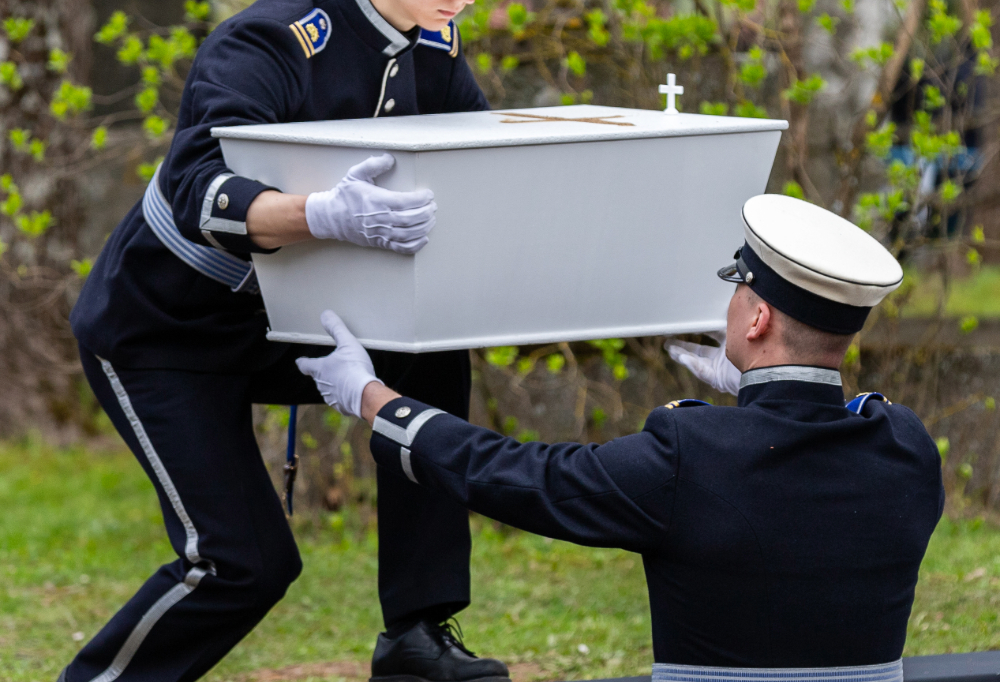 Tilaisuudessa arkkujen kantamisesta ja hautaan saattamisesta vastasivat kadetit. Kuva: Satu Astikainen