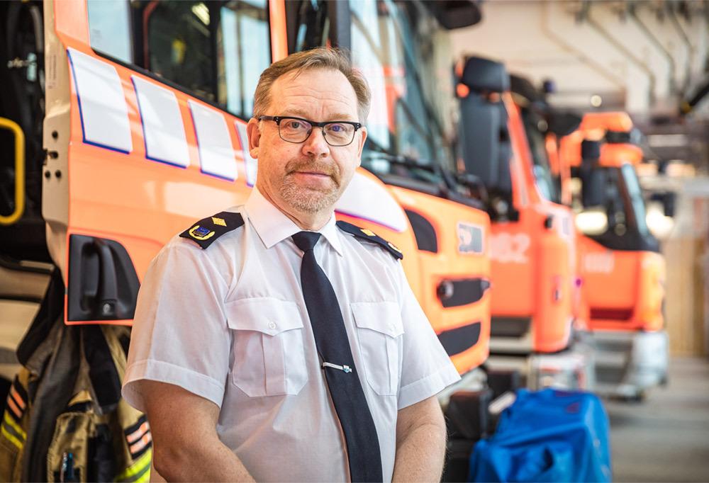 Helsingin pelastuslaitoksen pelastuspäällikkö Jari Korkiamäki on ylpeä siitä, että Suomessa kaikilla viranomaisilla on sama päämäärä ja yhteistyö on saumatonta. Kuva: Nuutti Liukko