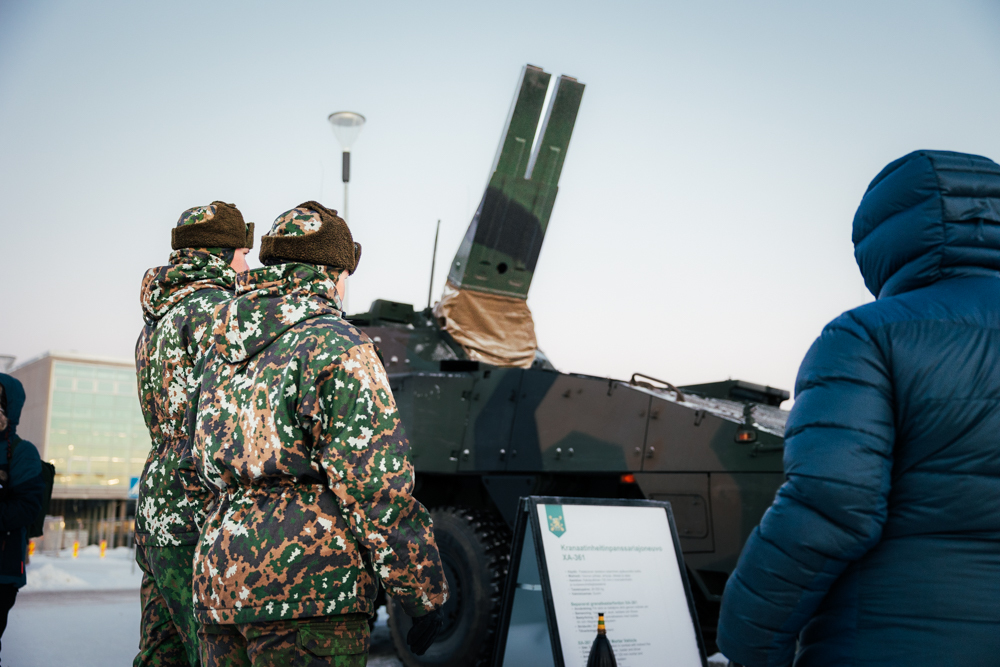 Oulun kauppatorille oli järjestynyt toimintakenttä, jossa esiteltiin Puolustusvoimien sekä viranomaisten kalustoa. Kuvassa AMOS-kranaatinheitinjärjestelmä. Kuva: Eeli Gröhn