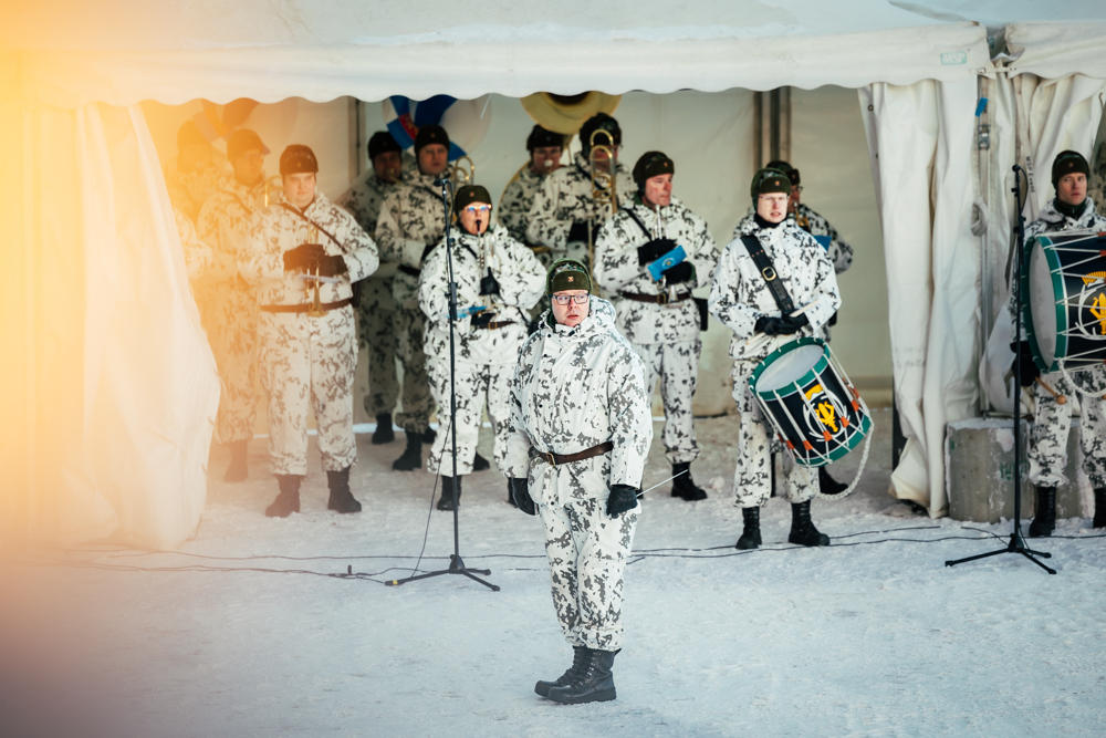 Lapin sotilassoittokunta vastasi musiikista paraatikatselmuksessa yhdessä kuoron kanssa. Kuva: Eeli Gröhn