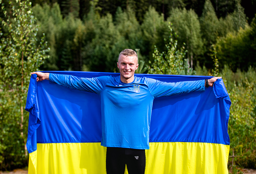 Ukrainalainen Dmytro Kmetiuk kantoi ylpeänä isänmaansa lippua. Hän sijoittui kokonaistuloksissa ensimmäiselle sijalle. Kuva: Jesse Liitola