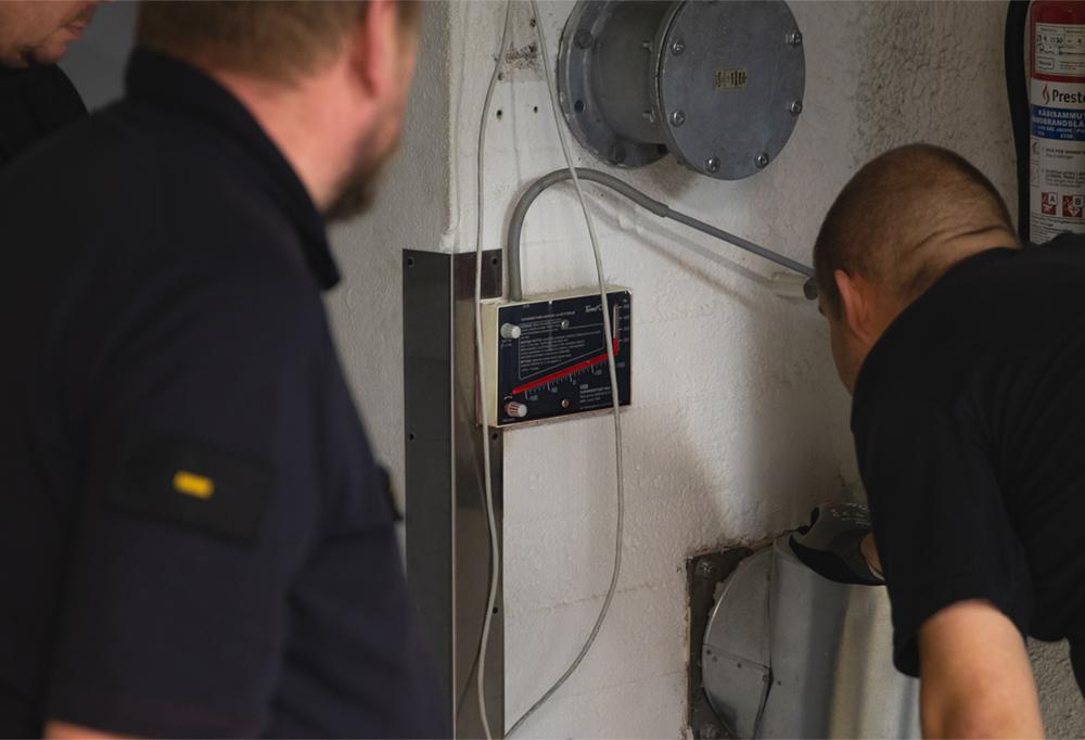 Suojissa käytettävä tekniikka on yksinkertaista ja toimintavarmaa. Koulutettavat harjoittelivat suojan paineistamista ja paineen tarkkailua.