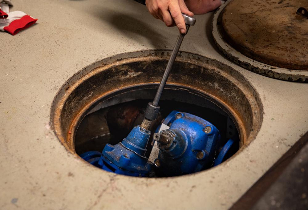 Suojan yhteydet ulkomaailmaan on voitava sulkea. Kuvassa suljetaan suojan yhteyttä kunnalliseen vesihuoltoon.