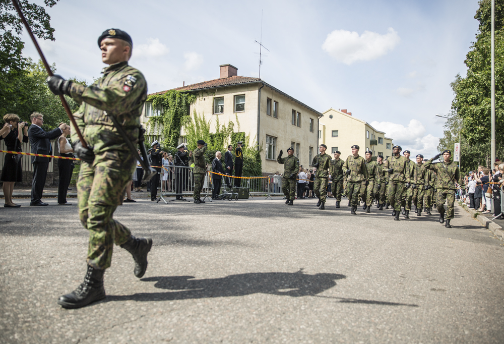 Ohimarssin kunniavieraana oli 94-vuotias sotaveteraani Matti Santamala. Noin 140 varusmiehen ohimarssi oli nopeasti marssittu, mutta tästä huolimatta ylpeyttä huokuneet vanhemmat saivat ohikiitävän hetken ajan nauttia vasta ylennettyjen sotilaiden maiharien kopseesta.