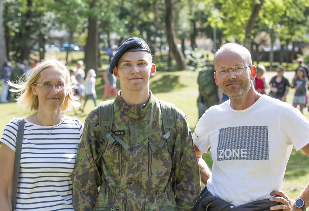 Varusmiehet etsiytyvät läheistensä seuraan. Markus Tenhulan ensimmäiset palvelusviikot ovat sujuneet hyvin. Suojeluhälytys on hajottanut ehkä eniten.