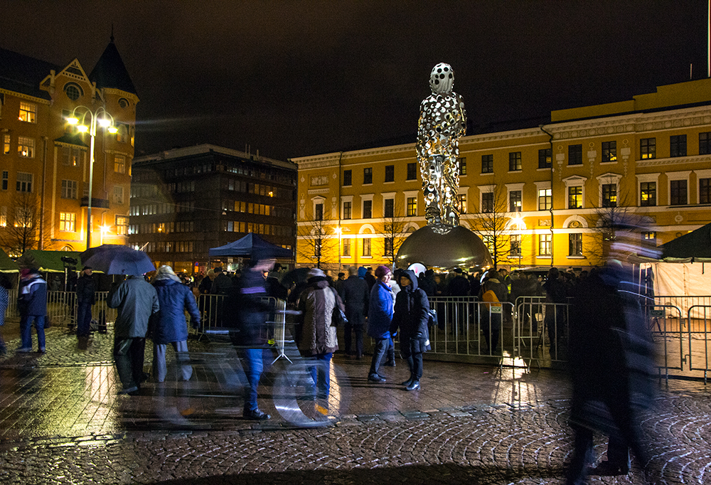 – Moninkertaisesti lävistetty, silti yhä pystyssä seisova Valon tuoja kunnioittaa itsenäisyyden säilyttämisen raskasta uhria ja niitä yli 25 000 suomalaista, jotka talvisodassa menettivät henkensä isänmaan puolesta, tasavallan presidentti Sauli Niinistö sanoi tervehdyksessään.