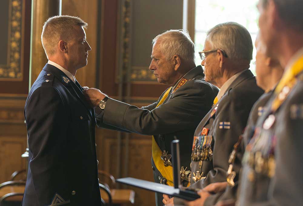 – Mitalit aina, ja tämä erityisesti otetaan vastaan nöyrin mielin ja kannetaan ylpeydellä. Vapaudenristin ritarikunta on tunnettu nimenomaan Mannerheimin ritarikuntana, ja merkitys on sotilaalle mikäli mahdollista vielä suurempi kuin monen muun tunnustuksen, Honkamaa totesi jakotilaisuudessa.