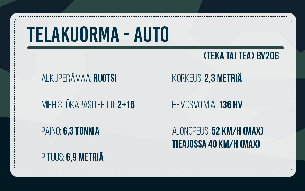 Kunnossapitoaliupseerina toimiva Väisänen on kouluttanut ja ajanut telakuorma-autoja, eli tutummin “tekoja”, parisenkymmentä vuotta. Niiden merkitystä arktisen alueen sodankäynnissä ei hänen mukaan voi vähätellä.