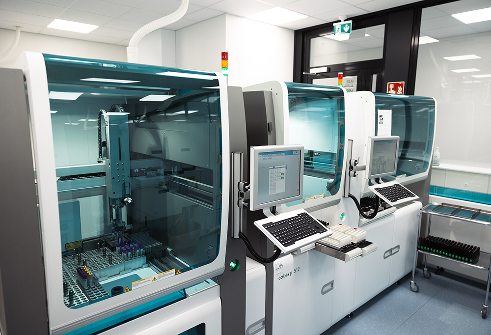 Esikäsittelyrobotti tunnistaa verinäytteen viivakoodin avulla, käsittelee näytettä ja siirtää sen analysaattorille. Kuva: Eetu Kolehmainen