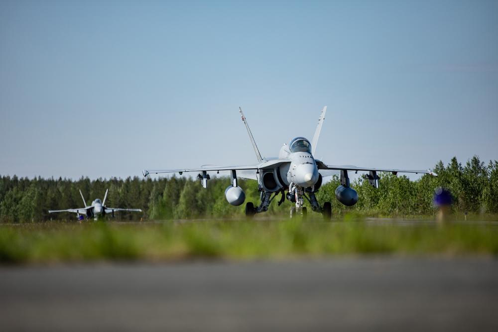 Tämänvuotinen ACE-harjoitus on järjestyksessään viides. Kuvassa Ilmavoimien F/A-18 Hornet -monitoimihävittäjiä ACE 21 -harjoituksessa. Kuva: Puolustusvoimat / Samuli Haapala.