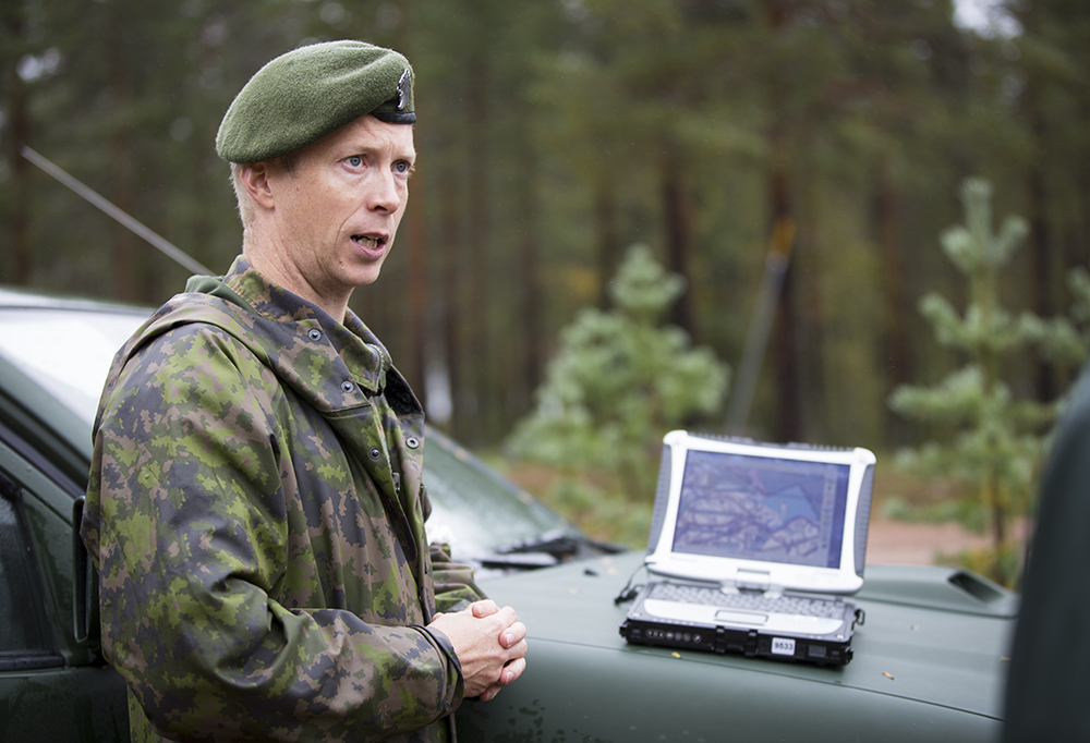 Majuri Oskari Paavola esitteli Kasi-simulaattorin antamaa reaaliaikaista tilannekuvaa taistelukentästä Lappi 16 -harjoituksessa. Tulevaisuudessa Kasi-simulaattoria kaavaillaan käytettävän yhdessä virtuaalikoulutusympäristön kanssa.