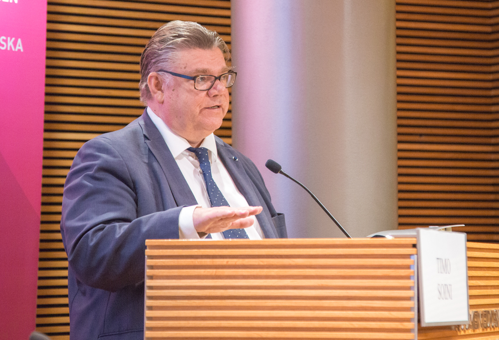 – Jos suurvallat sooloilevat, liikutaan vesillä, josta pienet maat kärsivät, kertoi ulkoministeri Timo Soini tilaisuuden avanneessa puheessaan.